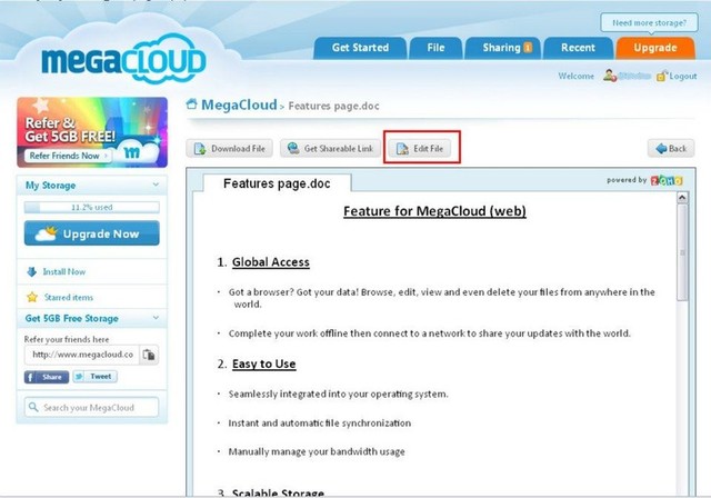 MegaCloud is one of the best cloud storage services. After proceeding to its simple installation it remains integrated with the operating system, allowing you to upload the files you want by dragging them to its own directory.
